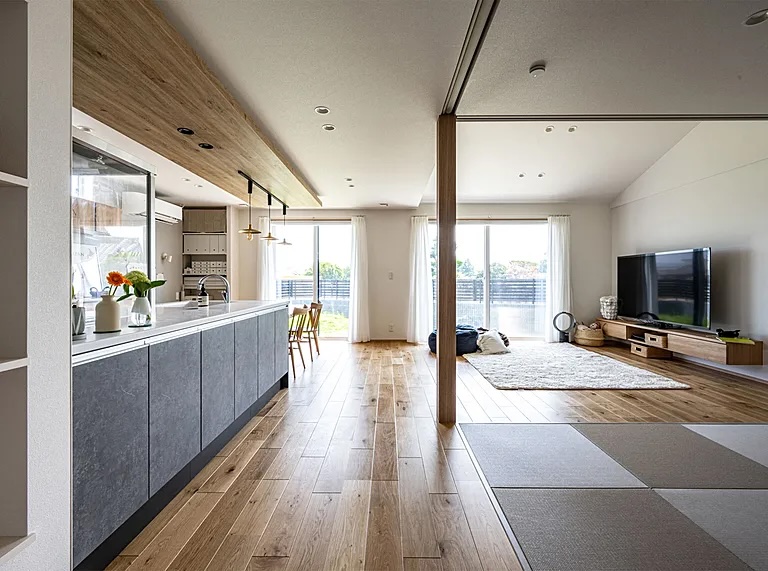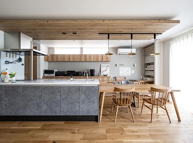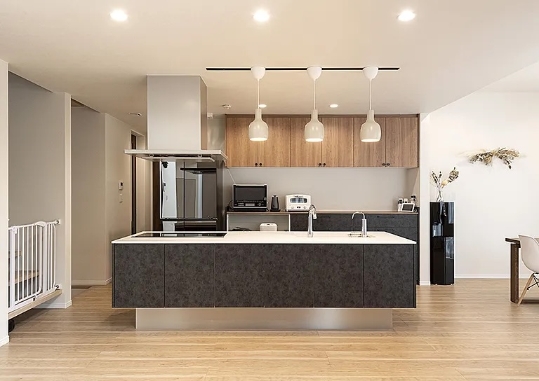| 「もっと楽しく、ずっと快適に。」をテーマに、2050年カーボンニュートラルな社会の実現に向け、住まいもより省エネ性能を向上させる必要性から「W断熱」や「高性能トリプルガラスサッシ」などを採用。UA値0.4以下という高水準な断熱性能を備えています。また、勾配屋根にデザイン性の高い「AIスレンダーエッジ(オリジナル鋼製破風)」を用いるとともに、新しい生活様式に合わせて「オリジナル仕様のペニンシュラキッチン」を採用。 時代と家族のニーズに合わせた高性能・高品質な住まい。 | |||