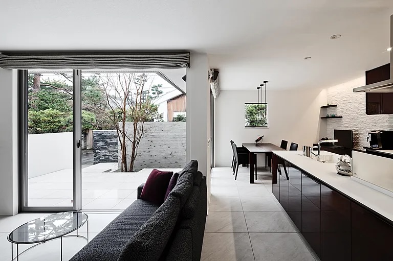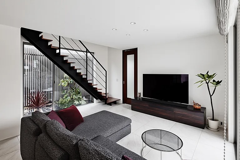モダンな3階建てのなかに、ヴィラのような心地よいリゾート空間が広がる家