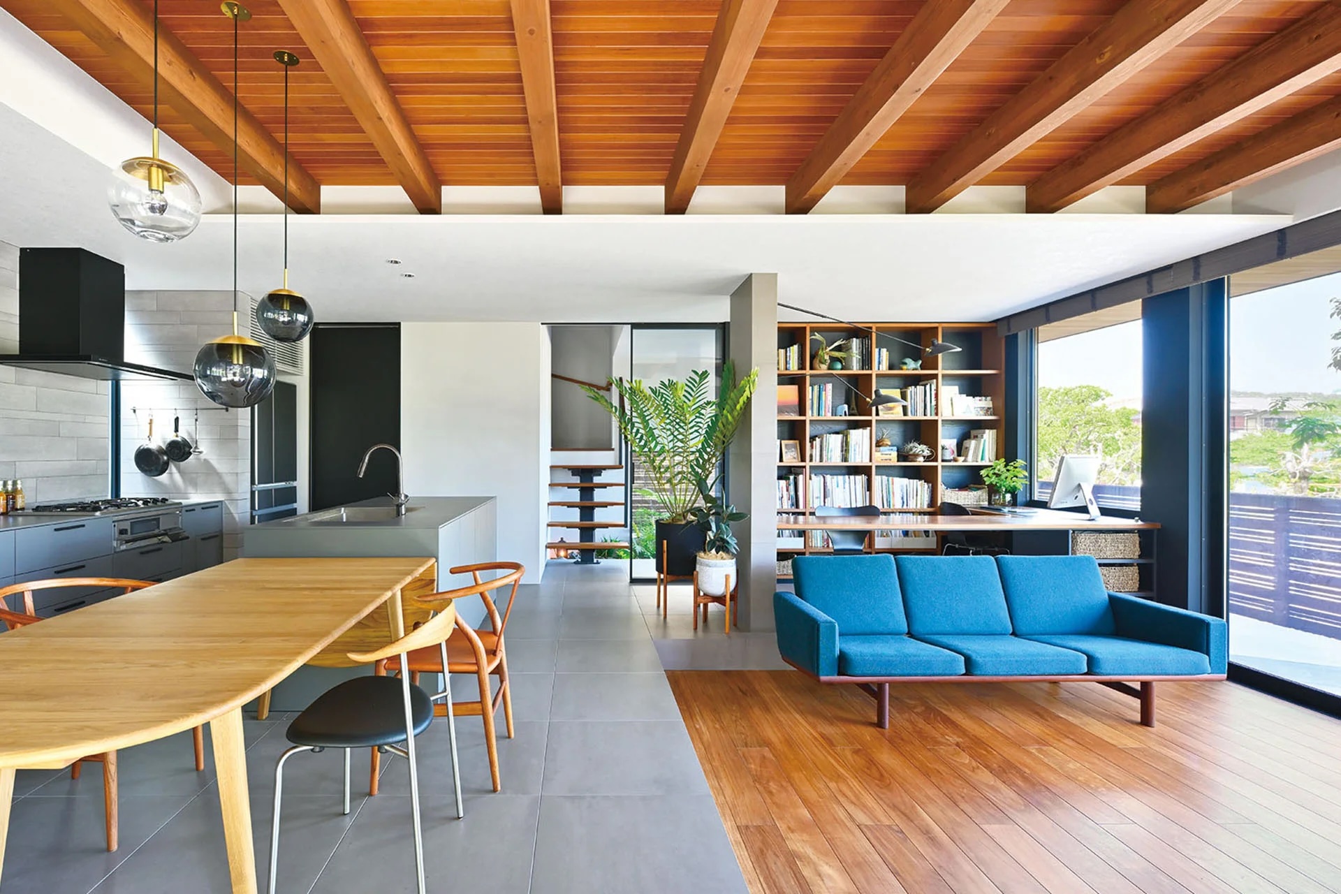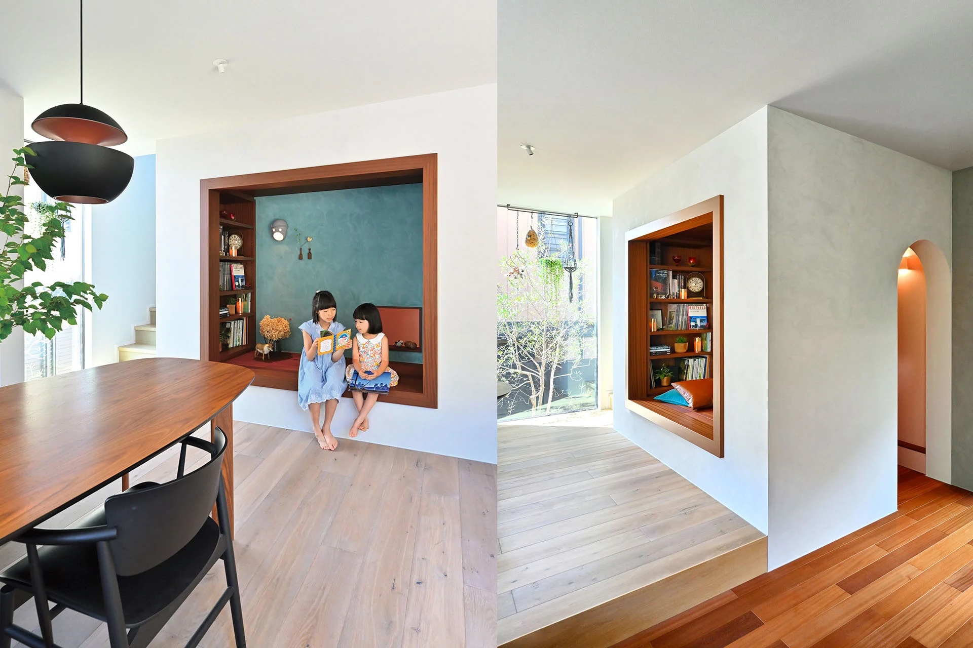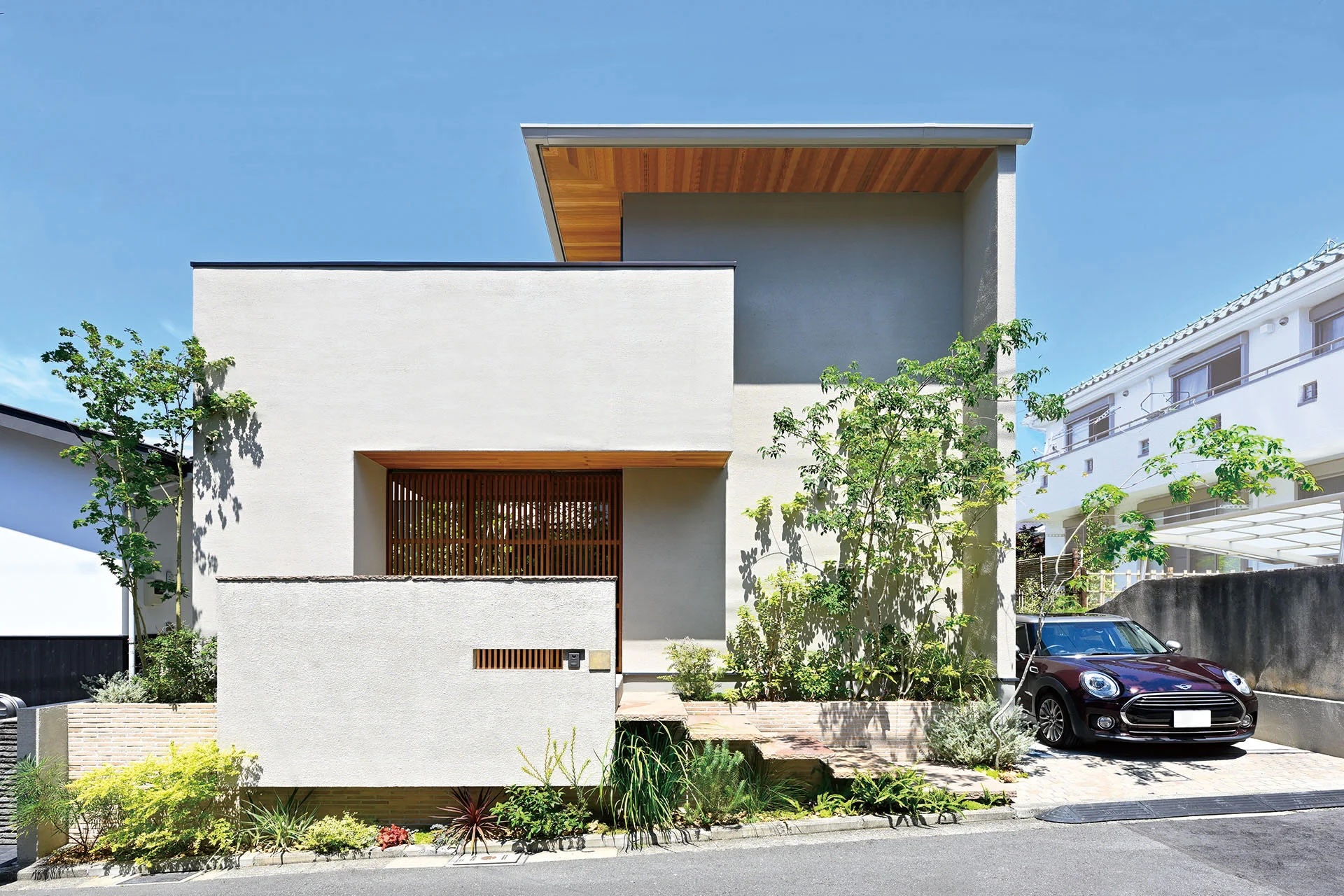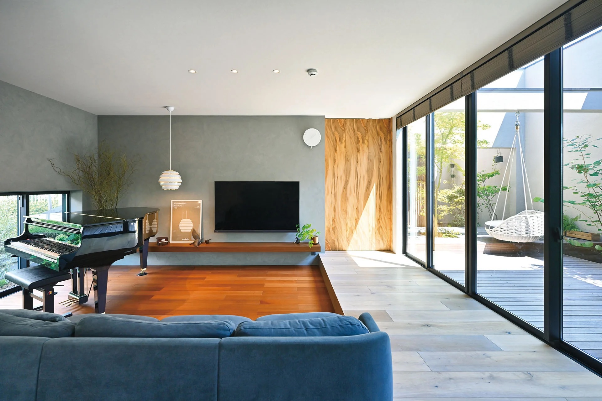 公園の緑に臨む、3つの庭のある家
