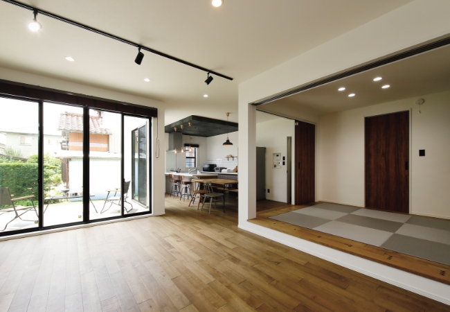 | ユニバーサルホームの最新商品が「ナナ・カラ」です。コロナ渦をきっかけに、家族団らんのあり方も変わってきています。同じ空間で一緒に過ごすだけでなく、一人の時間も大切に。そんなコンセプトを反映したのが、こちらのモデルです。1階と2階に「ナナ・カラ」と呼ぶ3畳ほどのフリースペースを用意。テレワークや学習スペース、趣味の部屋など多用途に使えます。そして「ナナ・カラ」が孤立しないように、吹き抜けや内窓を通じて上下階をつなぎ、家族の気配を感じられるように工夫しています。 | |||